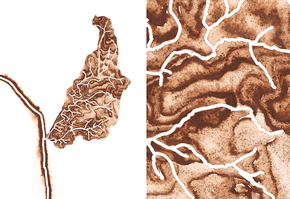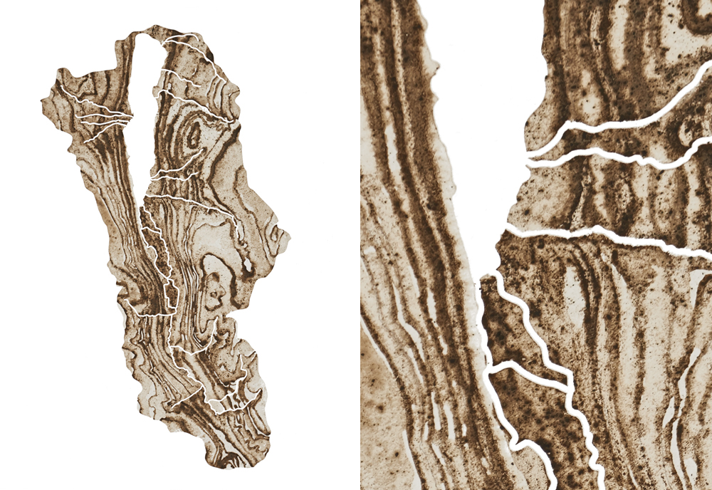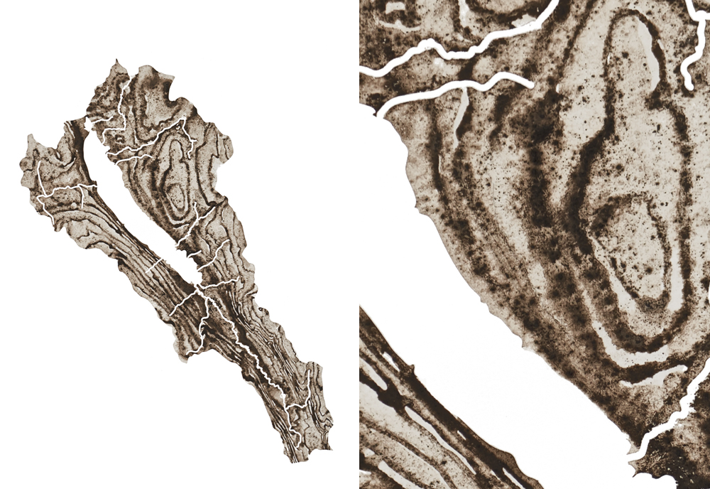 Alexauken Creek, 2017 / 15″ x 11″ / ground rock, water, & gum arabic on paper (detail on right) -